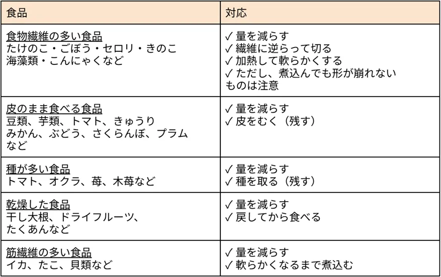 食物繊維を取り入れるときにはちょっとした工夫が大切です。以下の表を参考に自分に合った方法で食物繊維を取り入れてみましょう。