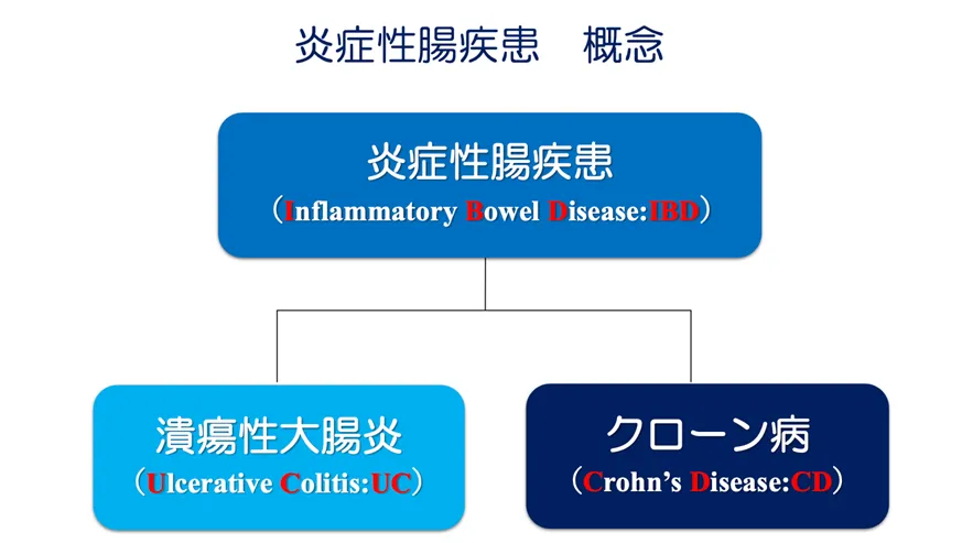 IBDには「潰瘍性大腸炎(UC)」「クローン病(CD)」という二つの病気が含まれます。名前は似ていますが、炎症が起こる場所や病気の進み方には明確な違いがあります。