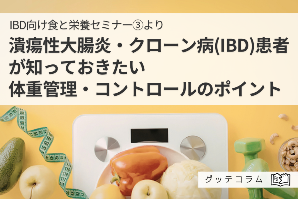 潰瘍性大腸炎・クローン病(炎症性腸疾患:IBD)と向き合う中で、「体重が減って戻らない」「薬の影響で逆に増えてしまった」といった悩みを抱える方は少なくありません。今回は、令和8年1月20日に行われた第3回IBDのための食と栄養セミナー「IBDと脂質・摂取と工夫」の内容をもとに、IBD患者さんが知っておきたい体重コントロールのポイントと、今日からできる食事の工夫についてわかりやすく解説します。